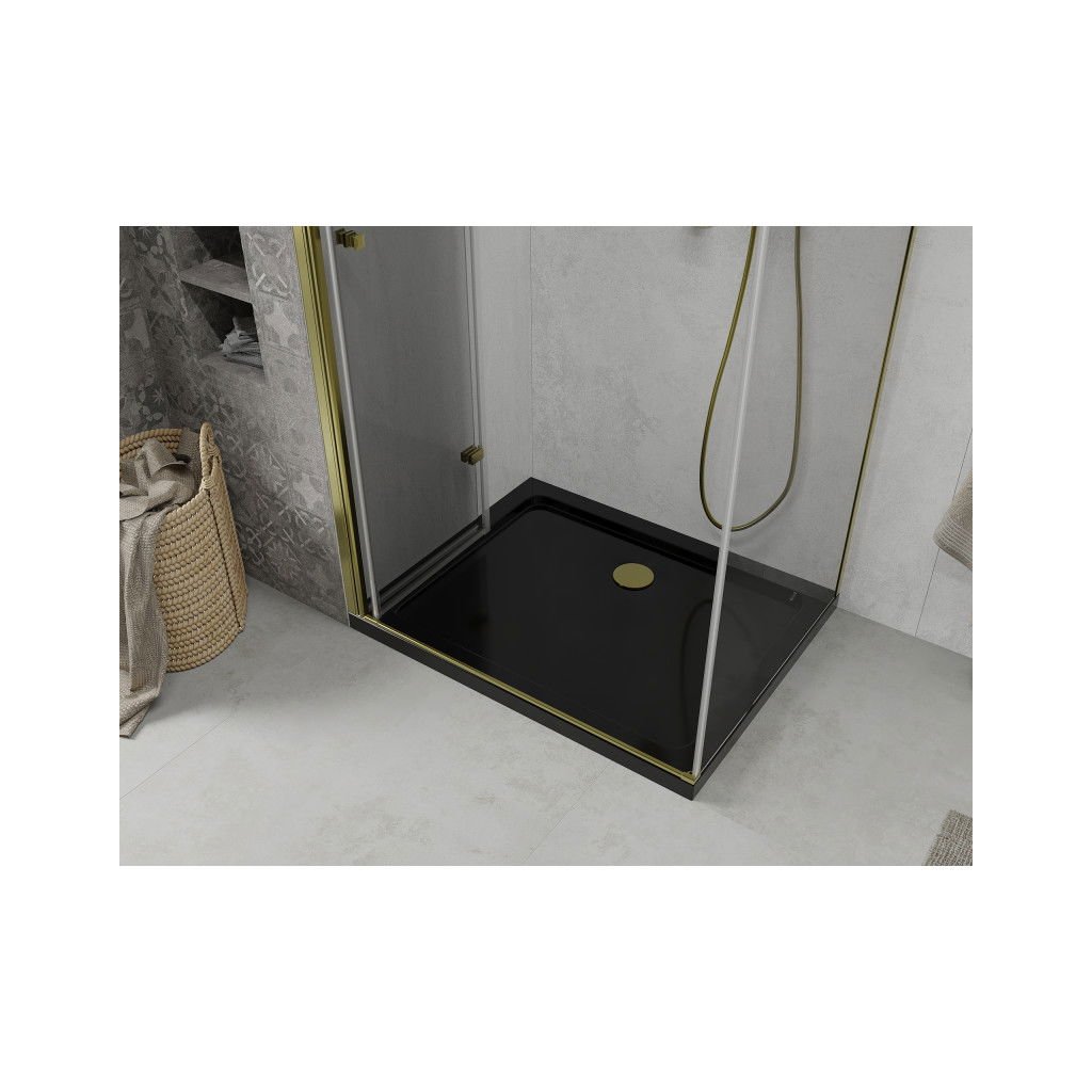 Mexen Lima, sprchový kout se skládacími dveřmi 100 (dveře) x 90 (stěna) cm, 6mm čiré sklo, chromový profil + slim sprchová vanička černá + zlatý sifon, 856-100-090-50-00-4070G