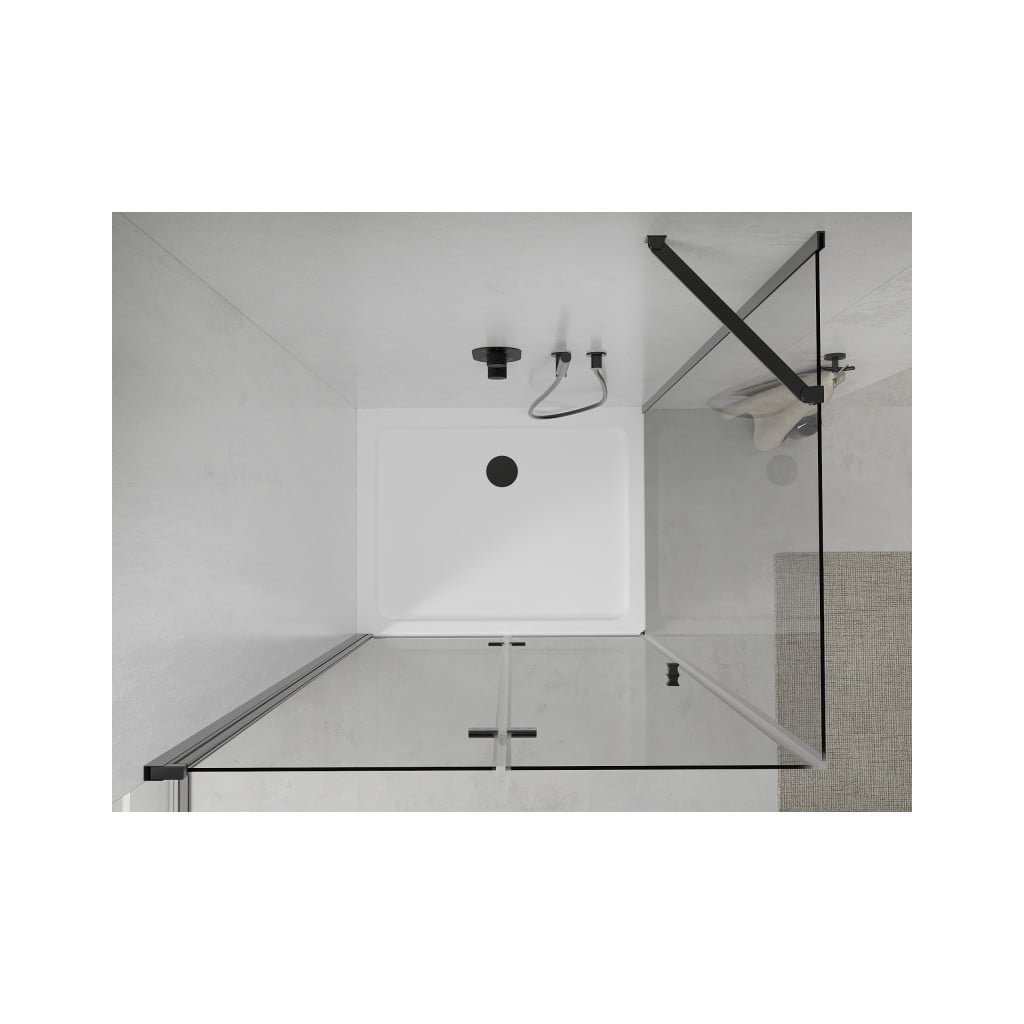 Mexen Lima, sprchový kout se skládacími dveřmi 70 (dveře) x 100 (stěna) cm, 6mm čiré sklo, černý profil + slim sprchová vanička bílá s černým sifonem, 856-070-100-70-00-4010B