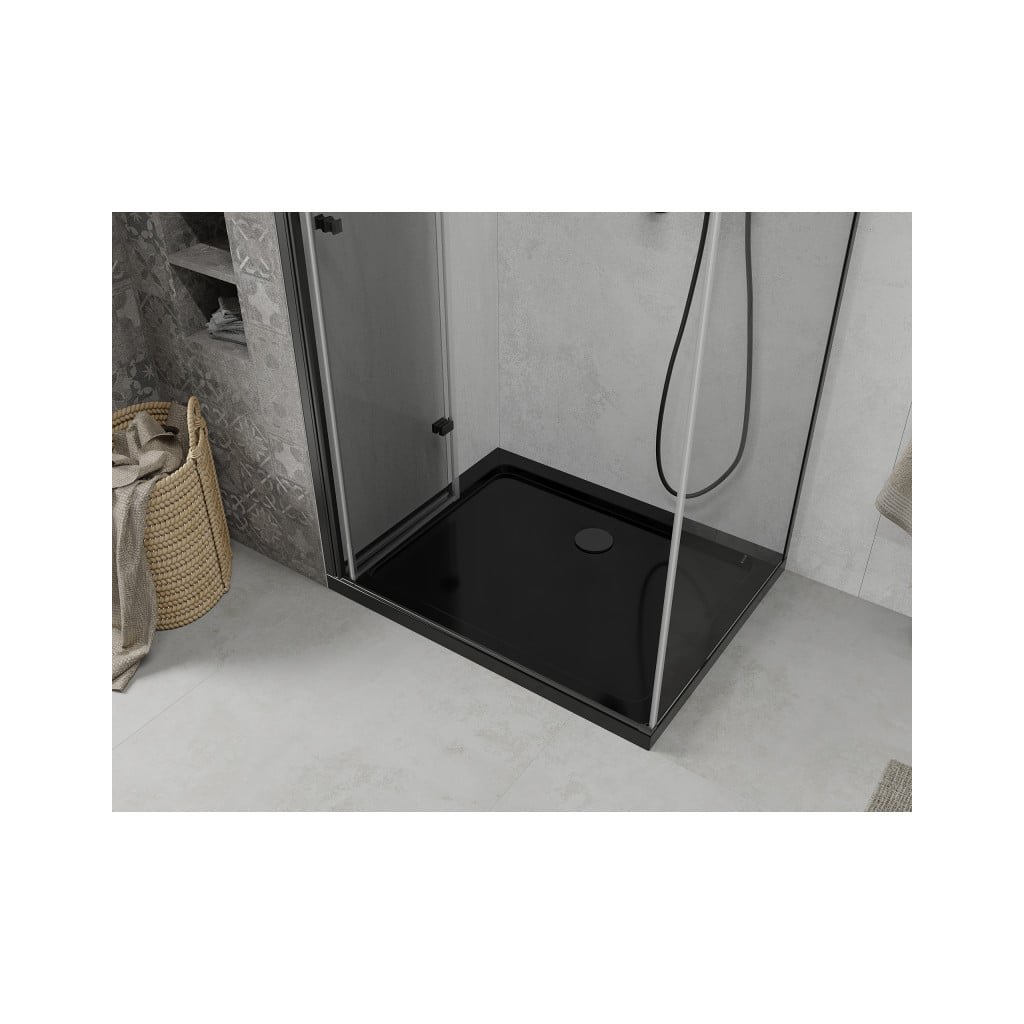 Mexen Lima, sprchový kout se skládacími dveřmi 80 (dveře) x 100 (stěna) cm, 6mm čiré sklo, černý profil + slim sprchová vanička černá s černým sifonem, 856-080-100-70-00-4070B