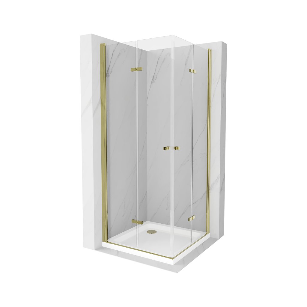 Mexen Lima Duo, sprchový kout 80 (dveře) x 80 (dveře) cm, 6mm čiré sklo, zlatý profil + sprchová vanička, 856-080-080-50-02-4010G