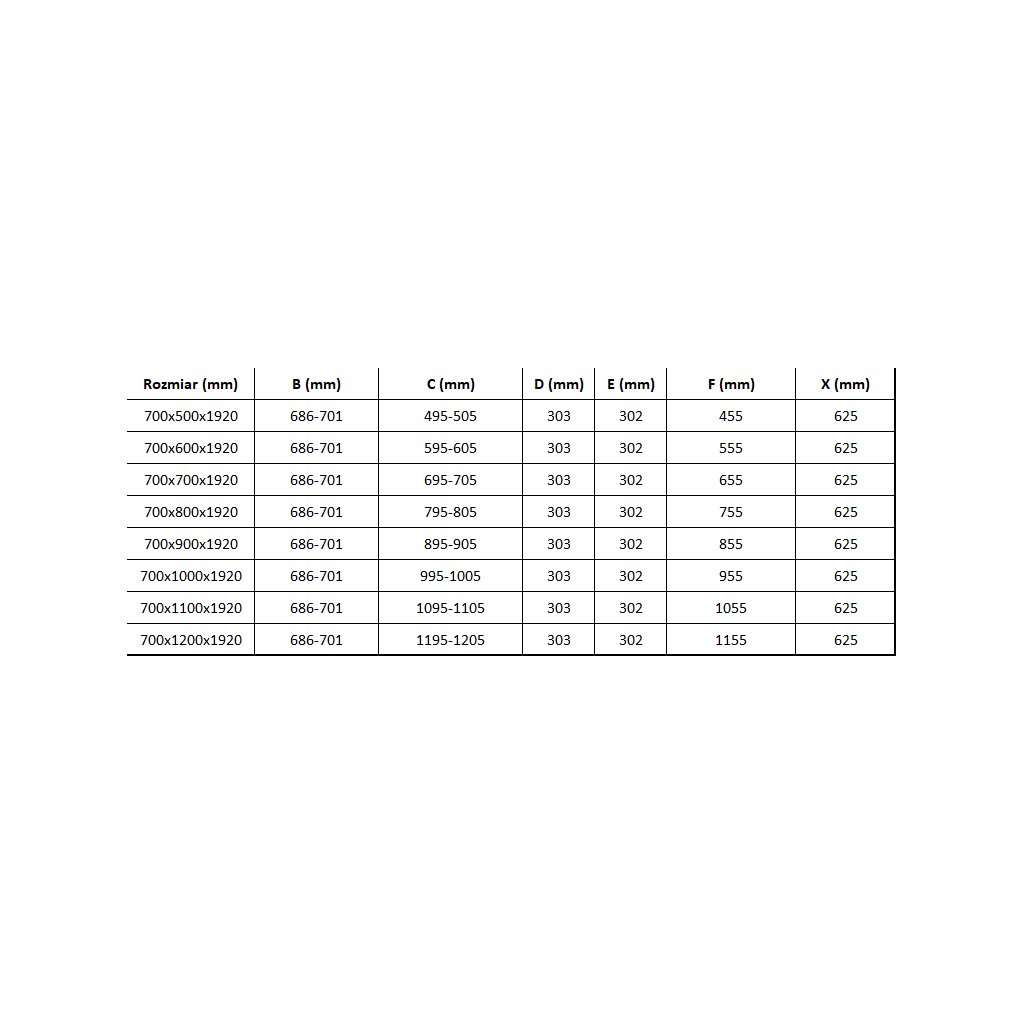- Rozměr: 70x90 cm (dveře 70 cm, stěna 90 cm)