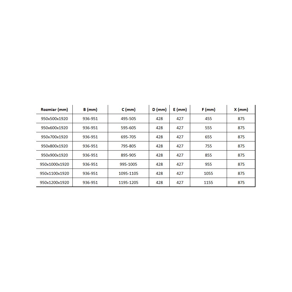 - Dveře (B min-max): 928-943 mm
