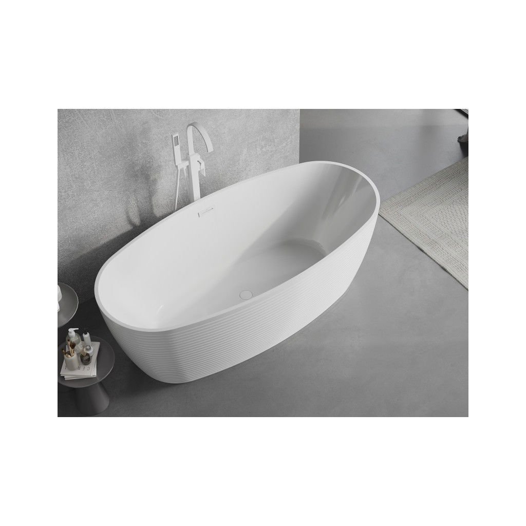 Mexen Lira, volně stojící vana, vzor, 170 × 80 cm, bílá lesklá, bílý přepad, 52831708000-20