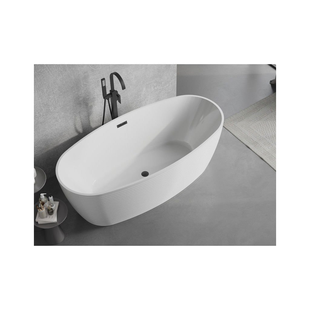 Mexen Lira, volně stojící vana, vzor, 170 × 80 cm, bílá lesklá, černý přepad, 52831708000-70