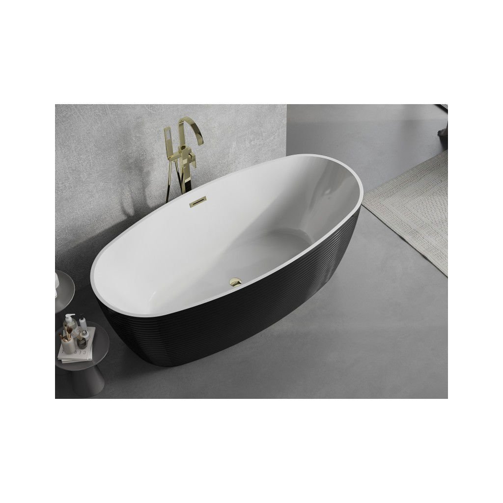 Mexen Lira, volně stojící vana, vzor, 170 x 80 cm, bílá-černá, zlatý lesklý přepad, 52831708075-50