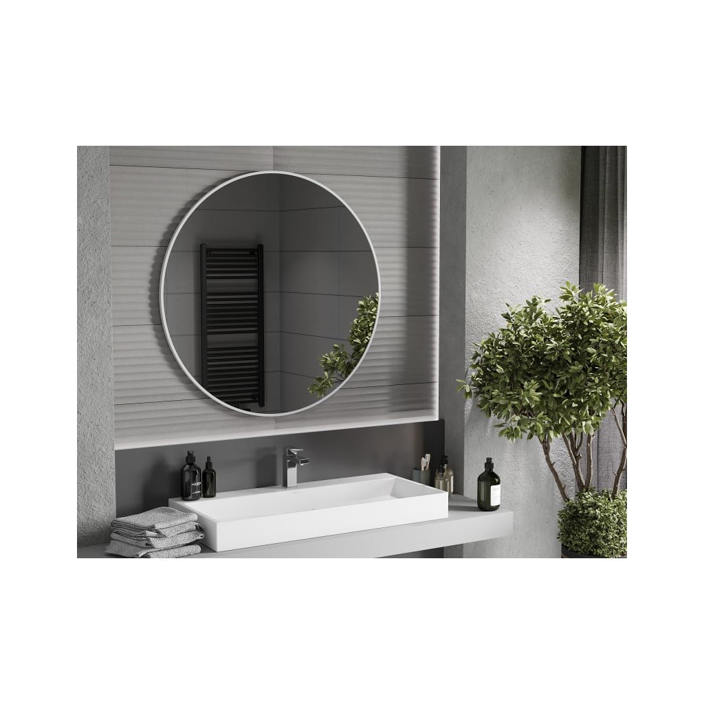 Mexen Loft, kulaté koupelnové zrcadlo 100 cm, barva rámu bílá, 9850-100-100-000-20