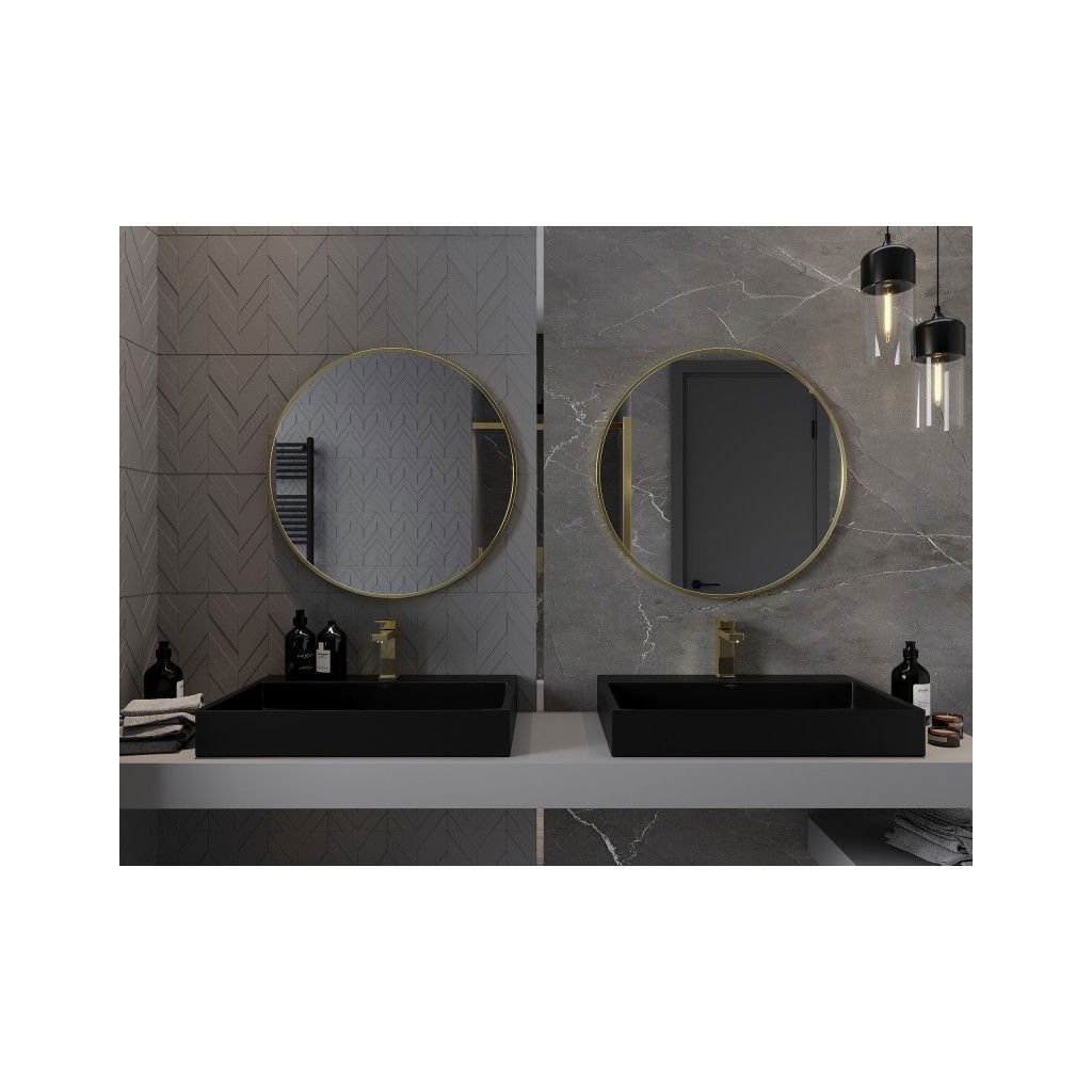 Mexen Loft, kulaté koupelnové zrcadlo 70 cm, barva rámu zlatá lesklá, 9850-070-070-000-50