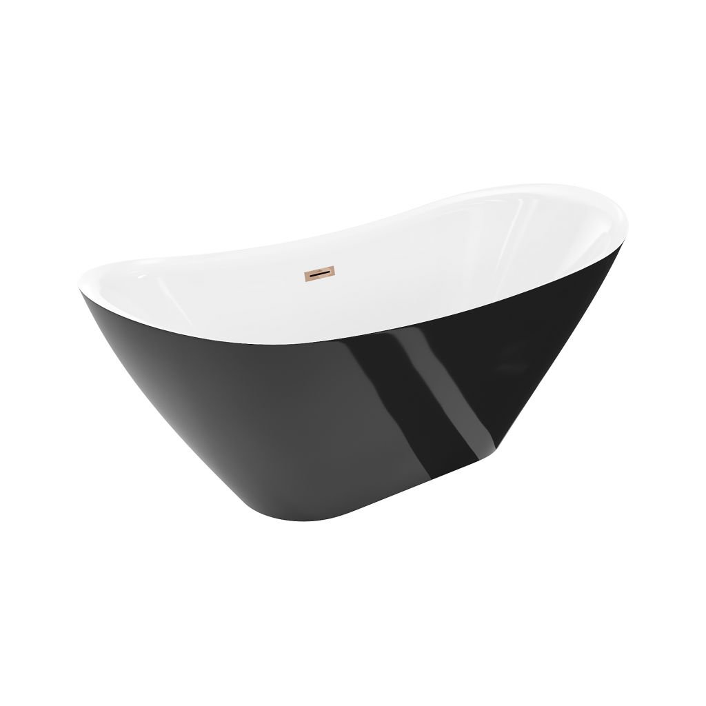 Mexen Lotos, volně stojící vana 140 x 75 cm, bílá/černá, růžové zlato přepad, 52051407775-60