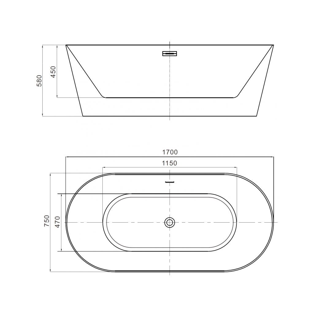 Mexen Luna, Slim volně stojící vana 170 x 75 cm, bílá, grafitový přepad, 52041707500-95