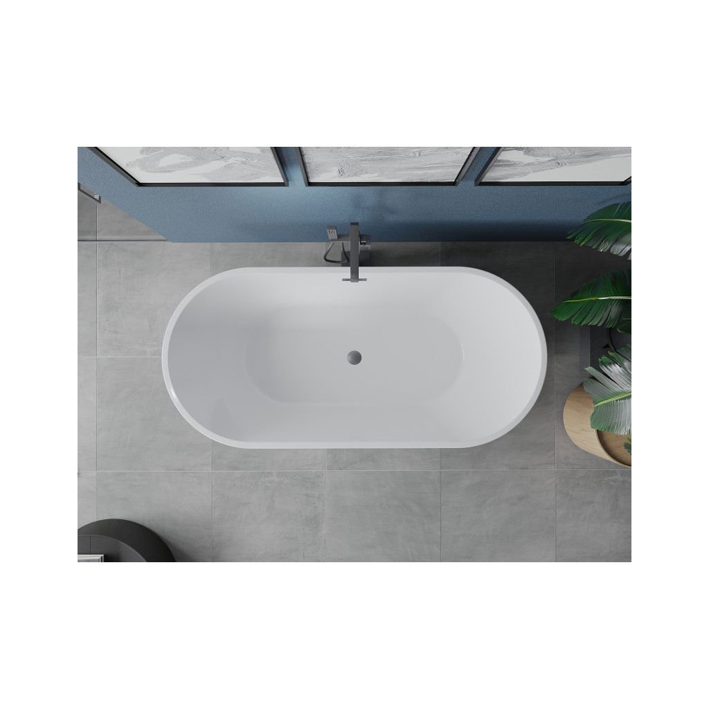Mexen Luna, volně stojící vana 140 x 75 cm, bílá, grafitový přepad, 52031407500-95