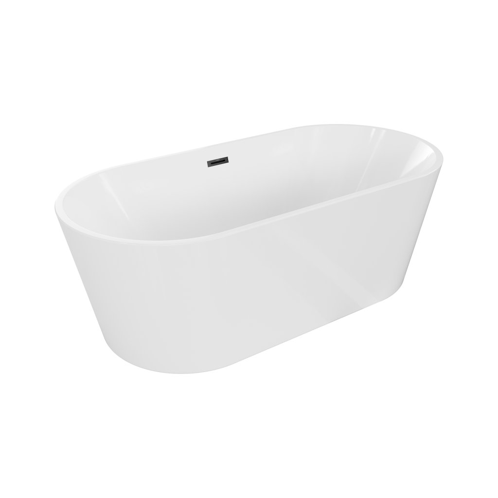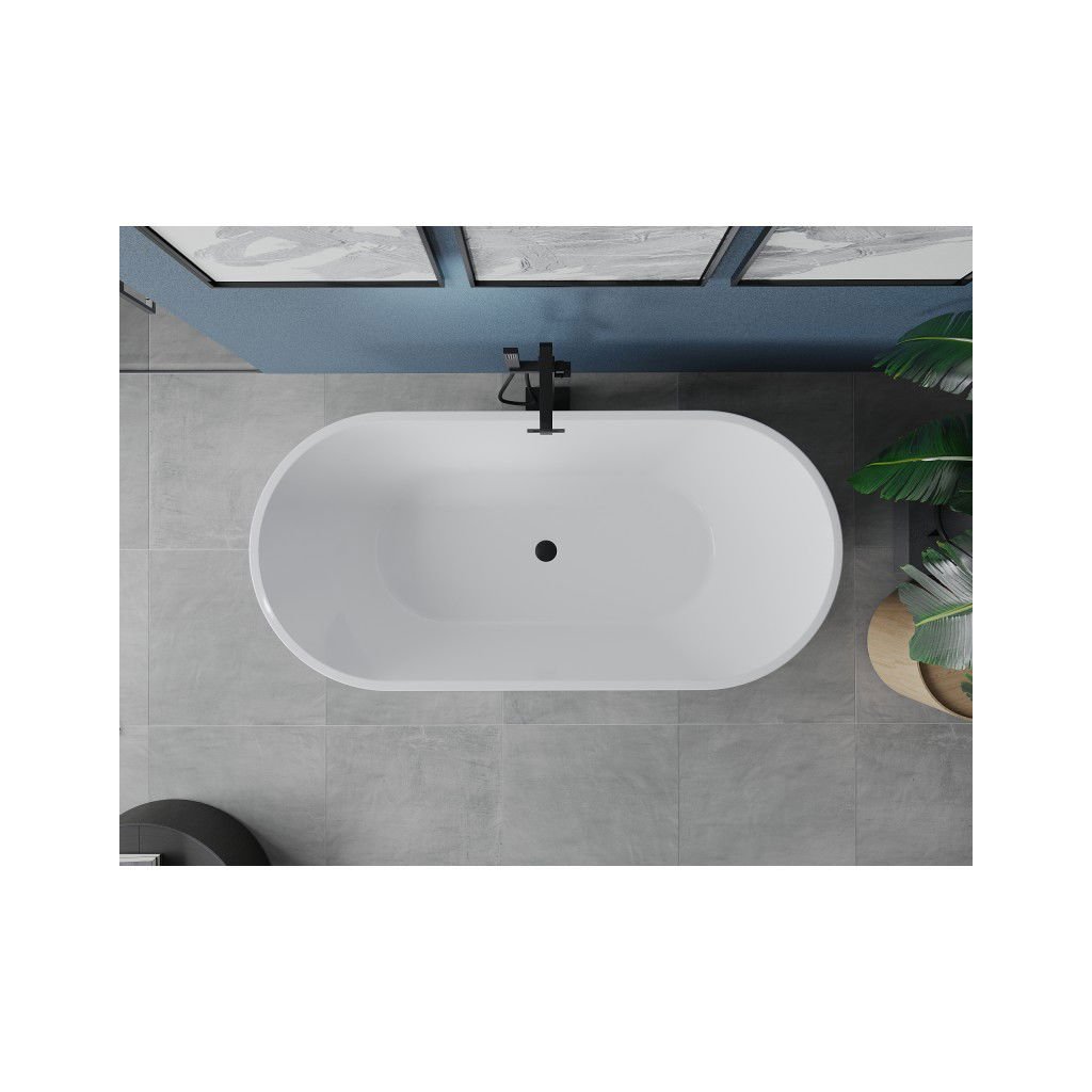 Mexen Luna, volně stojící vana 160 x 75 cm, bílá, černý matný přepad, 52031607500-70