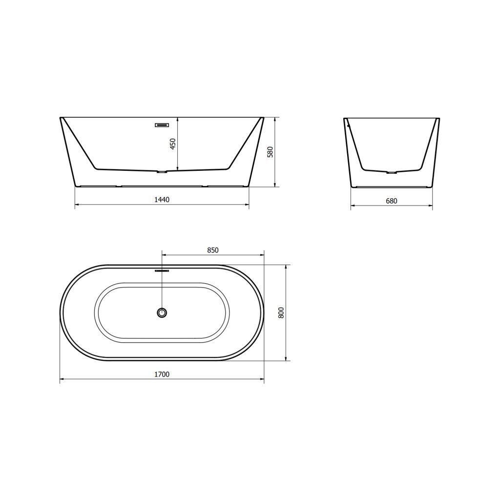 Mexen Luna, volně stojící vana 170 x 80 cm, bílá, zlatý lesklý přepad, 52031708000-50