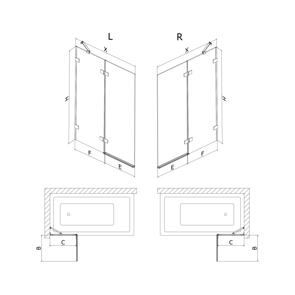 Mexen Lunar, 2-křídlová vanová zástěna pravá 120 x 150 cm, čiré sklo, zlatá matná, 897-120-100-55-00-P