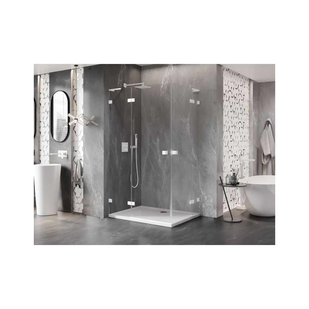 Mexen Lunar, L Duo sklápěcí sprchový kout 85 x 70 cm, 8mm čiré sklo, bílý profil, 834L-085L-070P-20-00