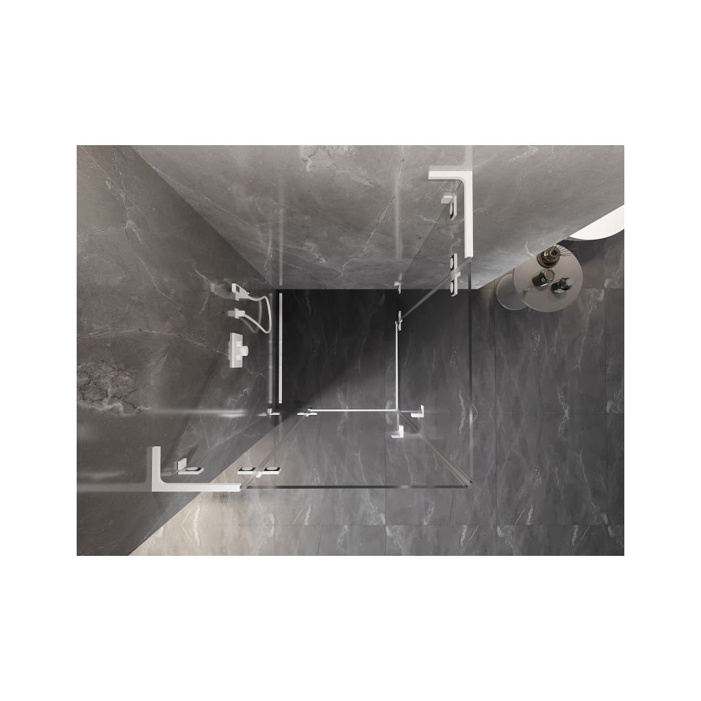 Mexen Lunar, L Duo výklopný sprchový kout 70 x 70 cm, 8mm čiré sklo, bílý profil, 834L-070L-070P-20-00