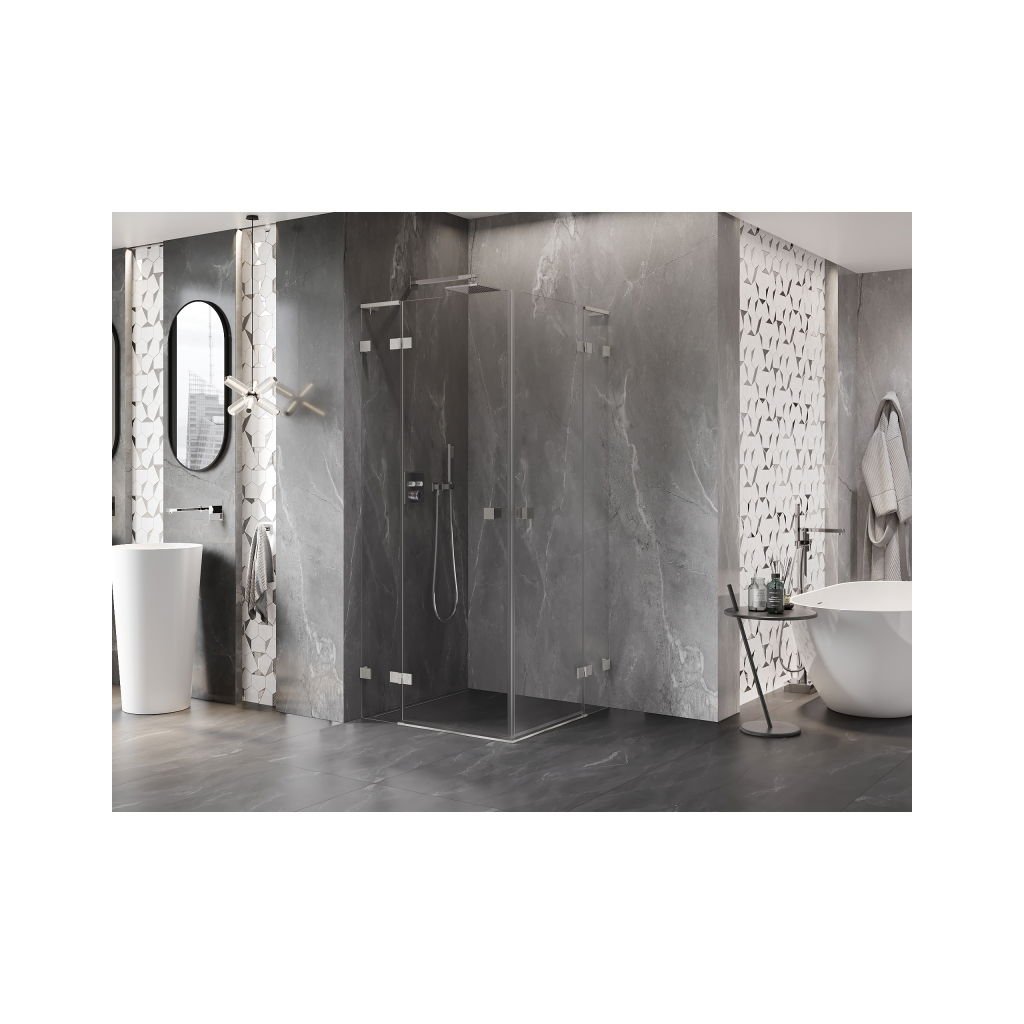 Mexen Lunar, L Duo výklopný sprchový kout 85 x 85 cm, 8mm čiré sklo, ocelový profil, 834L-085L-085P-97-00