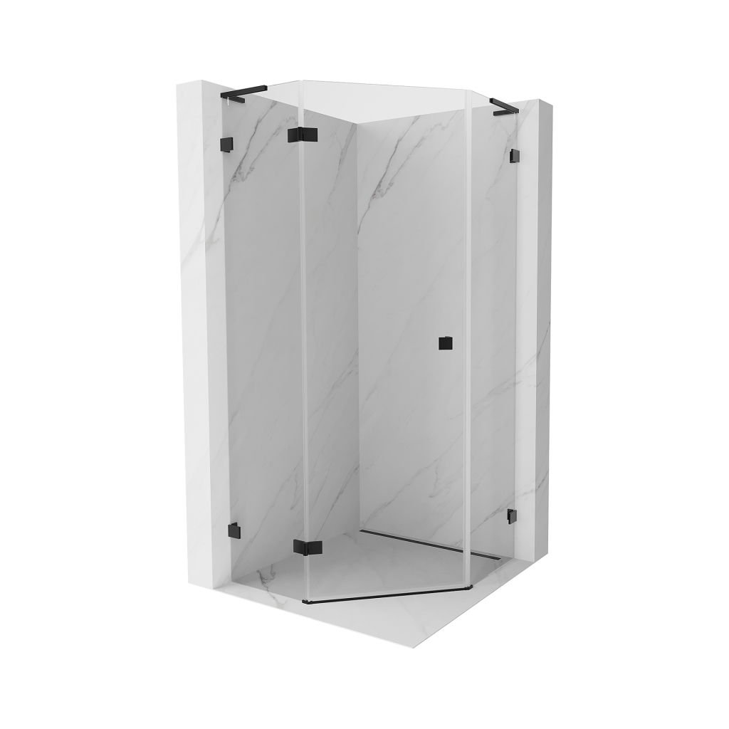 Mexen Lunar, L pětiúhelníkový sprchový kout naklápěcí doleva 100 x 100 cm, 8mm čiré sklo, černý profil, 831L-100L-100P-70-00-L
