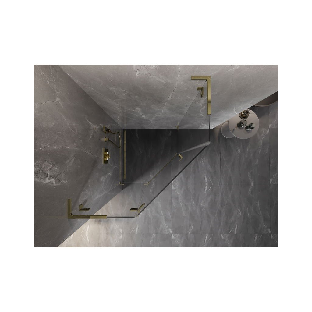 Mexen Lunar, L pětiúhelníkový sprchový kout naklápěcí doleva 100 x 100 cm, 8mm čiré sklo, zlatý profil, 831L-100L-100P-50-00-L