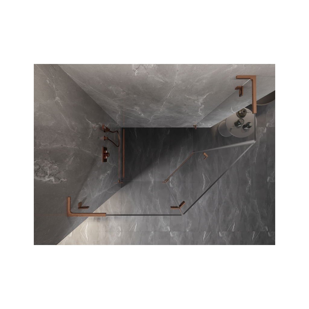 Mexen Lunar, L pětiúhelníkový sprchový kout naklápěcí doleva 100 x 80 cm, 8mm čiré sklo, profil měděná matná, 831L-100L-080P-65-00-L