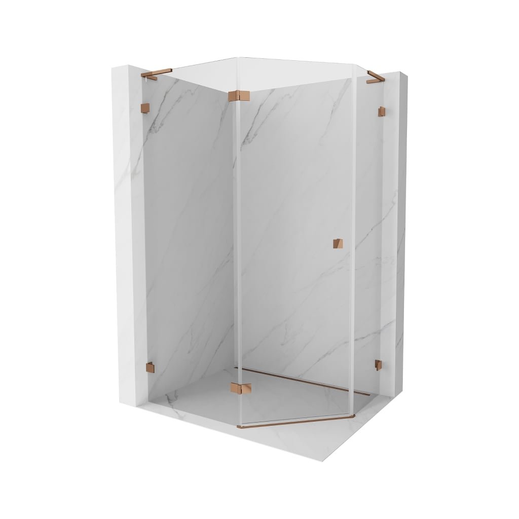 Mexen Lunar, L pětiúhelníkový sprchový kout naklápěcí doleva 100 x 80 cm, 8mm čiré sklo, profil růžové zlato, 831L-100L-080P-60-00-L