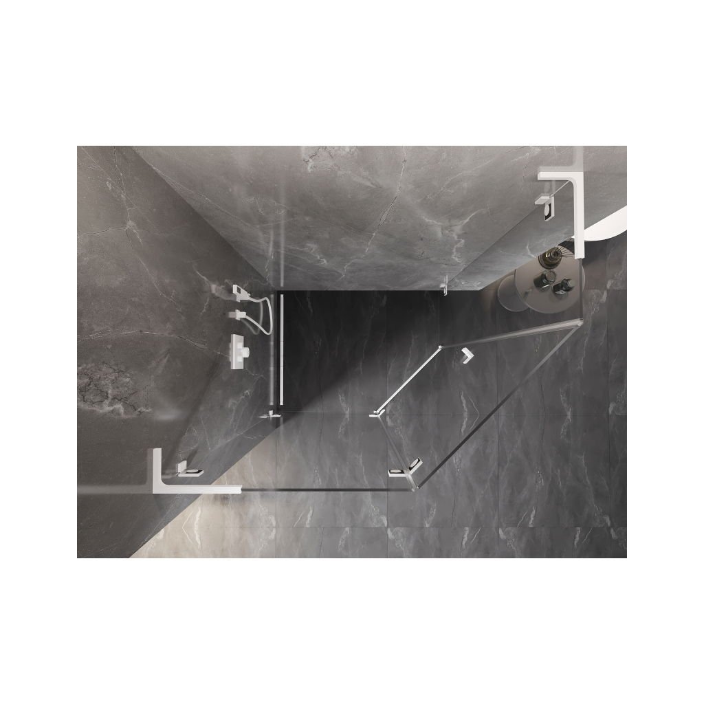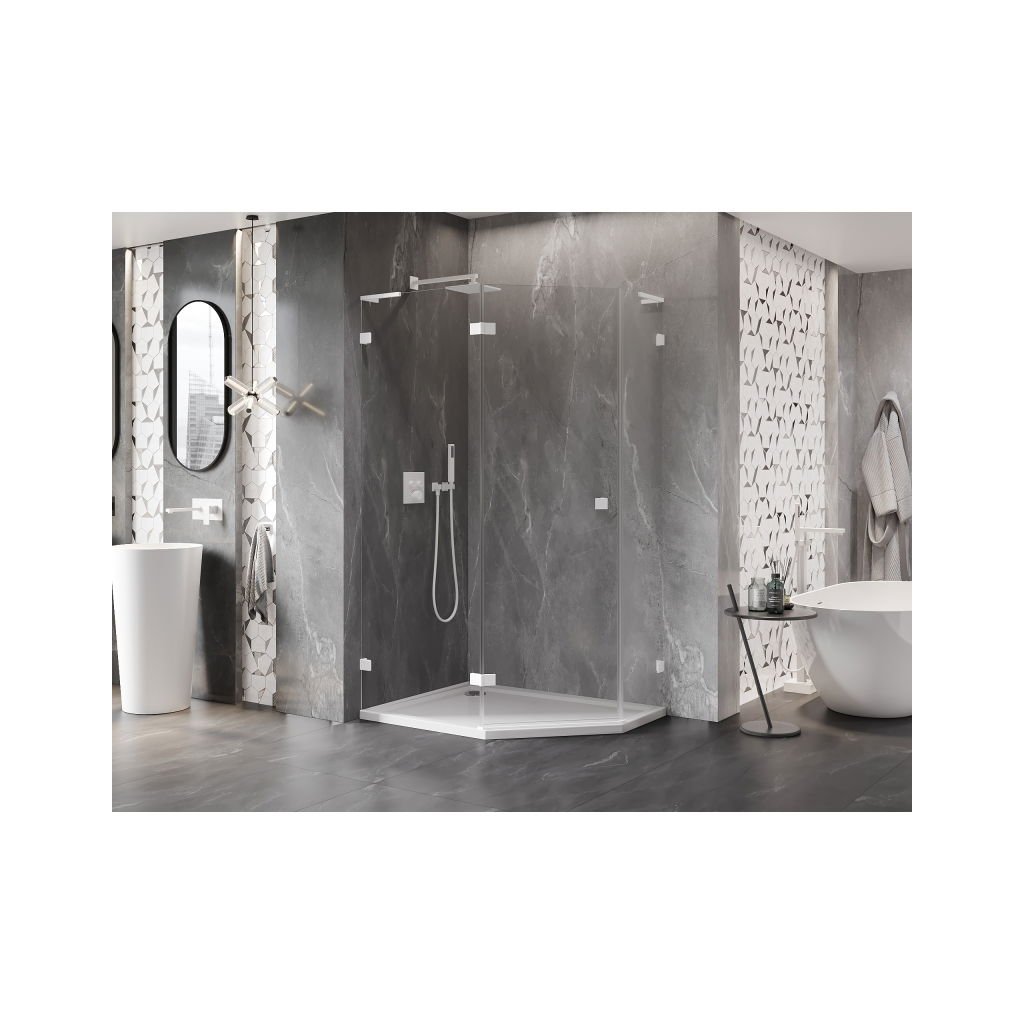 Mexen Lunar, L pětiúhelníkový sprchový kout naklápěcí doleva 100 x 90 cm, 8mm čiré sklo, bílý profil, 831L-100L-090P-20-00-L