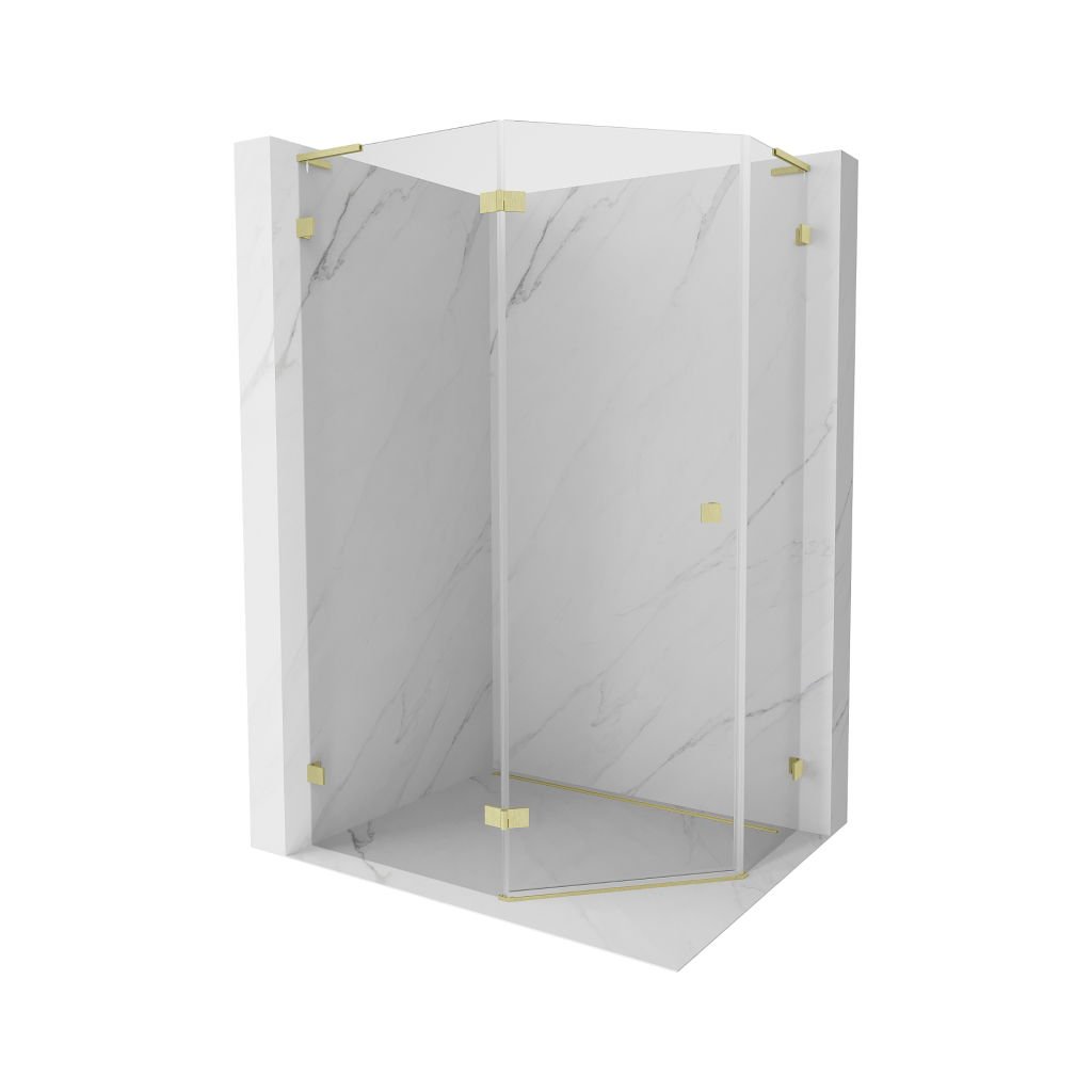 Mexen Lunar, L pětiúhelníkový sprchový kout naklápěcí doleva 100 x 90 cm, 8mm čiré sklo, zlatý matný profil, 831L-100L-090P-55-00-L