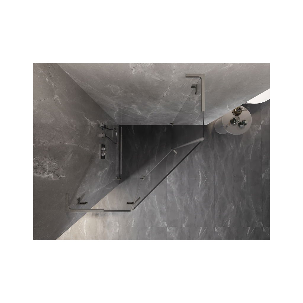 Mexen Lunar, L pětiúhelníkový sprchový kout naklápěcí doleva 100x100 cm, 8mm čiré sklo, ocelový profil, 831L-100L-100P-97-00-L