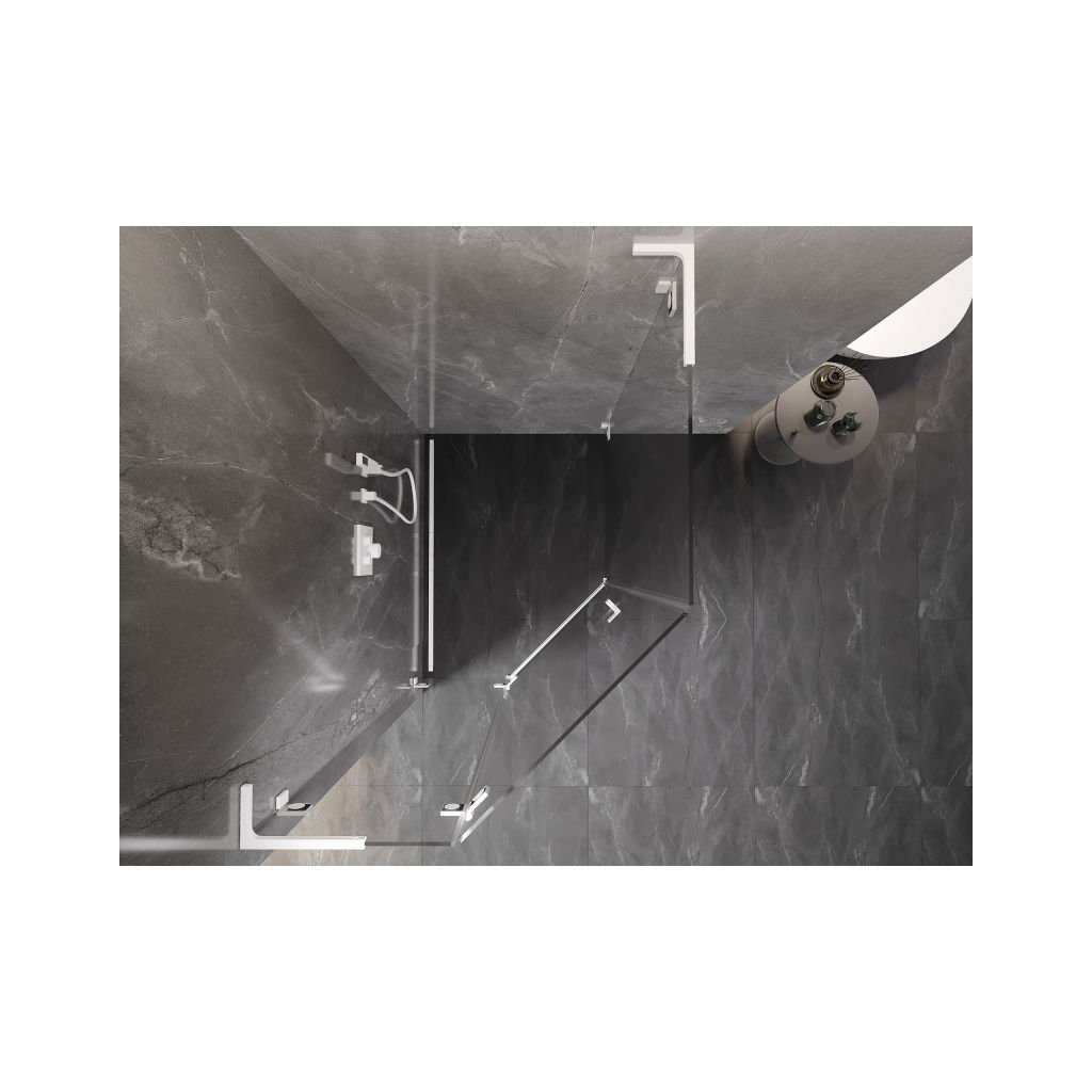 Mexen Lunar, L pětiúhelníkový sprchový kout naklápěcí doleva 80 x 90 cm, 8mm čiré sklo, bílý profil, 831L-080L-090P-20-00-L