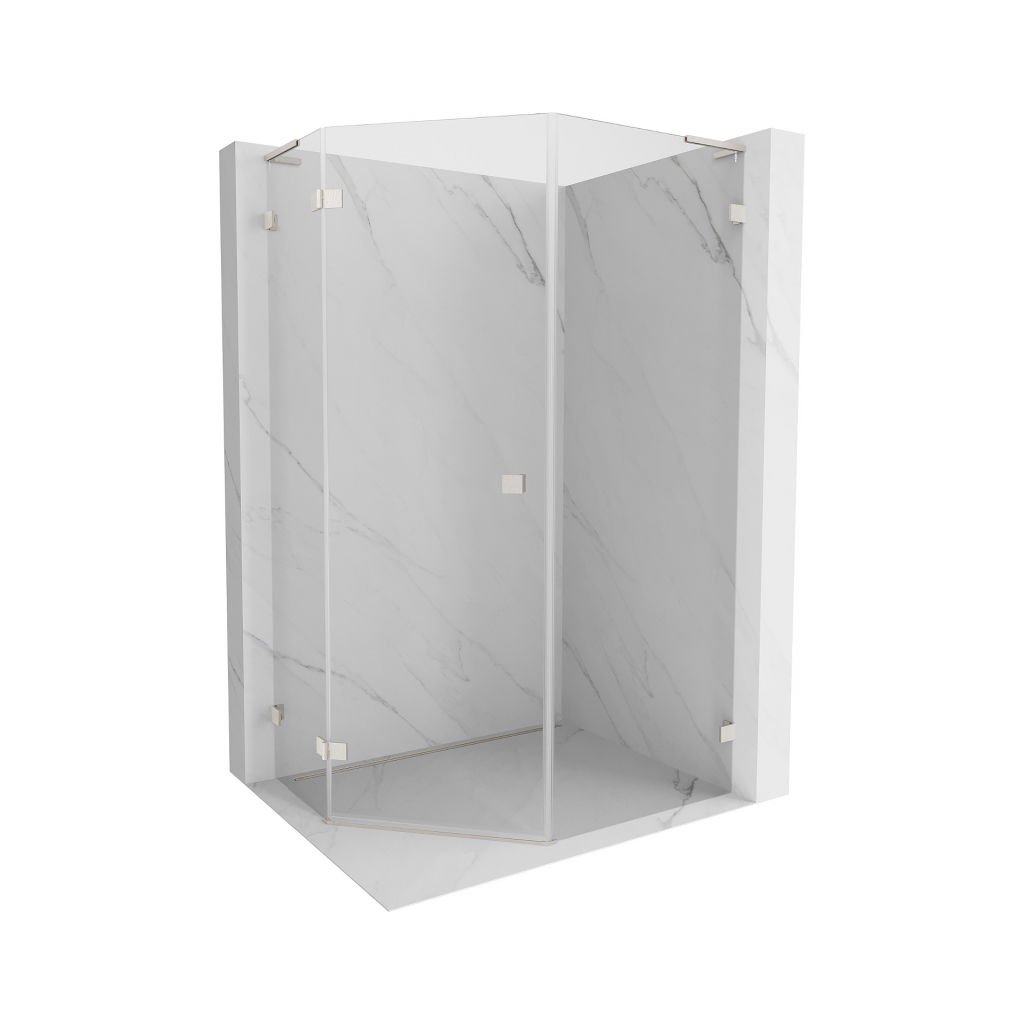 Mexen Lunar, L pětiúhelníkový sprchový kout naklápěcí doleva 80 x 90 cm, 8mm čiré sklo, ocelový profil, 831L-080L-090P-97-00-L