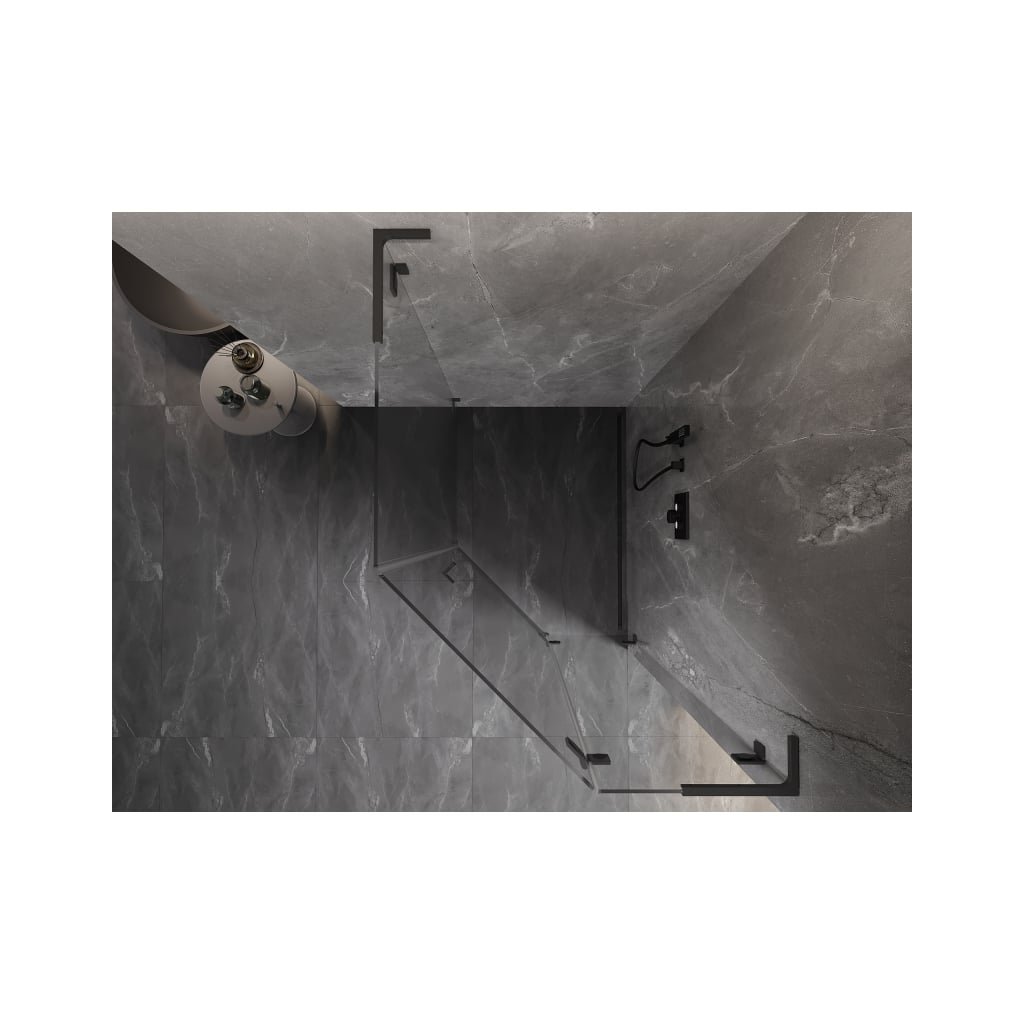 Mexen Lunar, L pětiúhelníkový sprchový kout s pravým sklonem 80 x 90 cm, 8mm čiré sklo, grafitový profil, 831L-080P-090L-95-00-P
