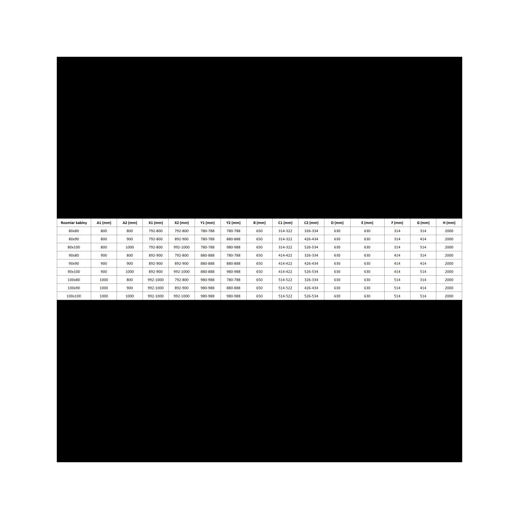 Rozměry: 80x80 cm (pravé dveře 80 cm, stěna 80 cm)