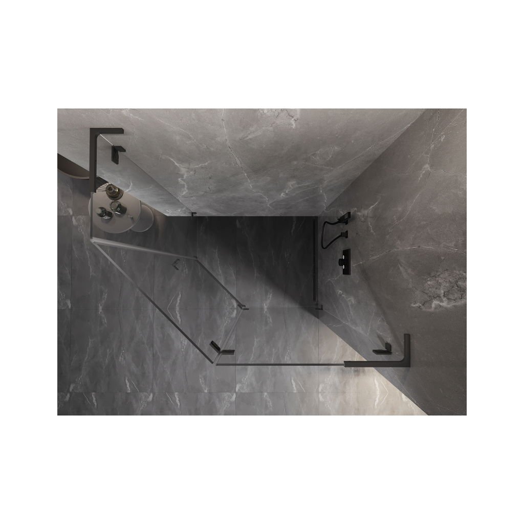 Mexen Lunar, L pravý výklopný pětiúhelníkový sprchový kout 90 x 80 cm, 8mm čiré sklo, grafitový profil, 831L-090P-080L-95-00-P