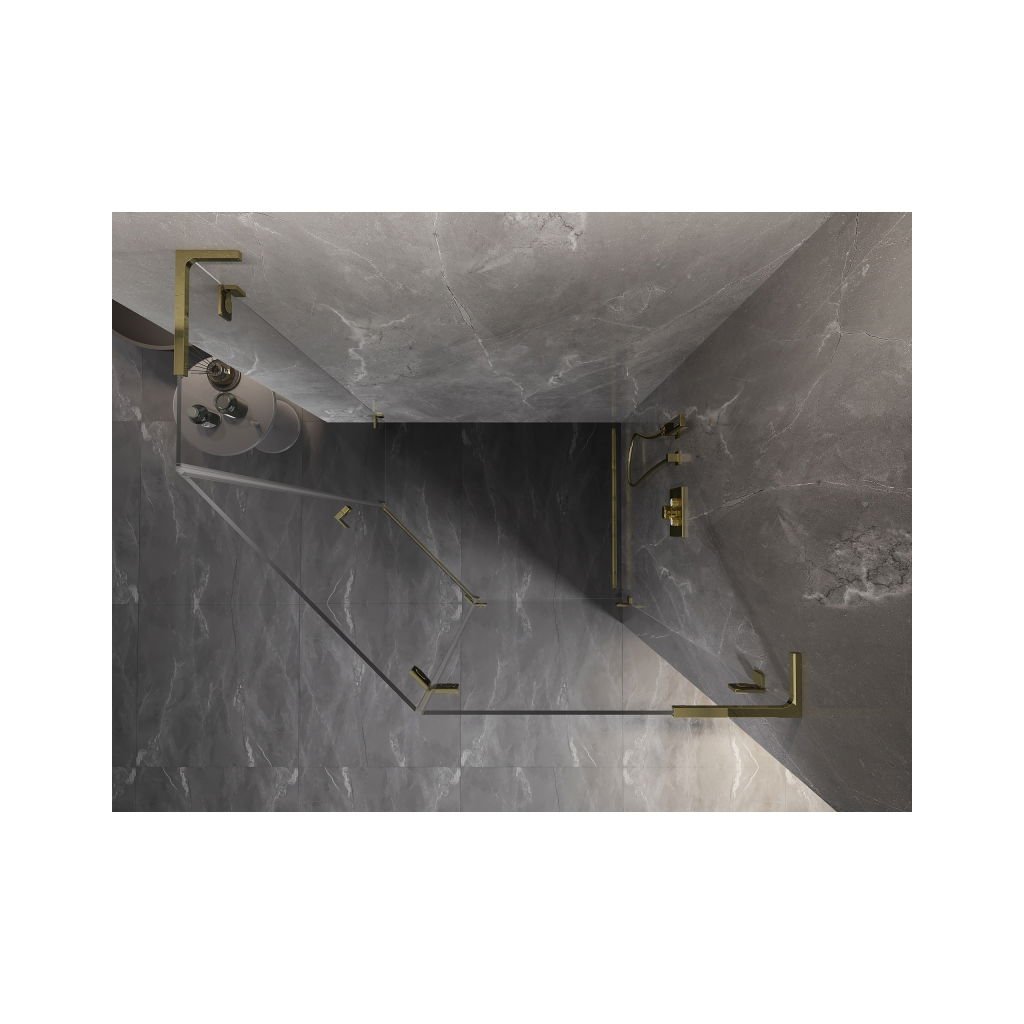 Mexen Lunar, L pravý výklopný pětiúhelníkový sprchový kout 90 x 80 cm, 8mm čiré sklo, zlatý profil, 831L-090P-080L-50-00-P