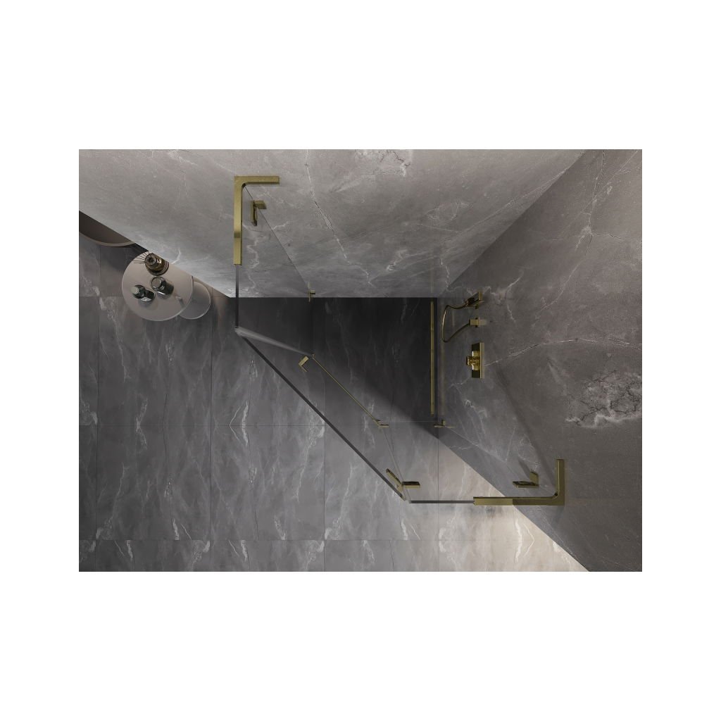 Mexen Lunar, L pravý výklopný pětiúhelníkový sprchový kout 90 x 90 cm, 8mm čiré sklo, zlatý profil, 831L-090P-090L-50-00-P