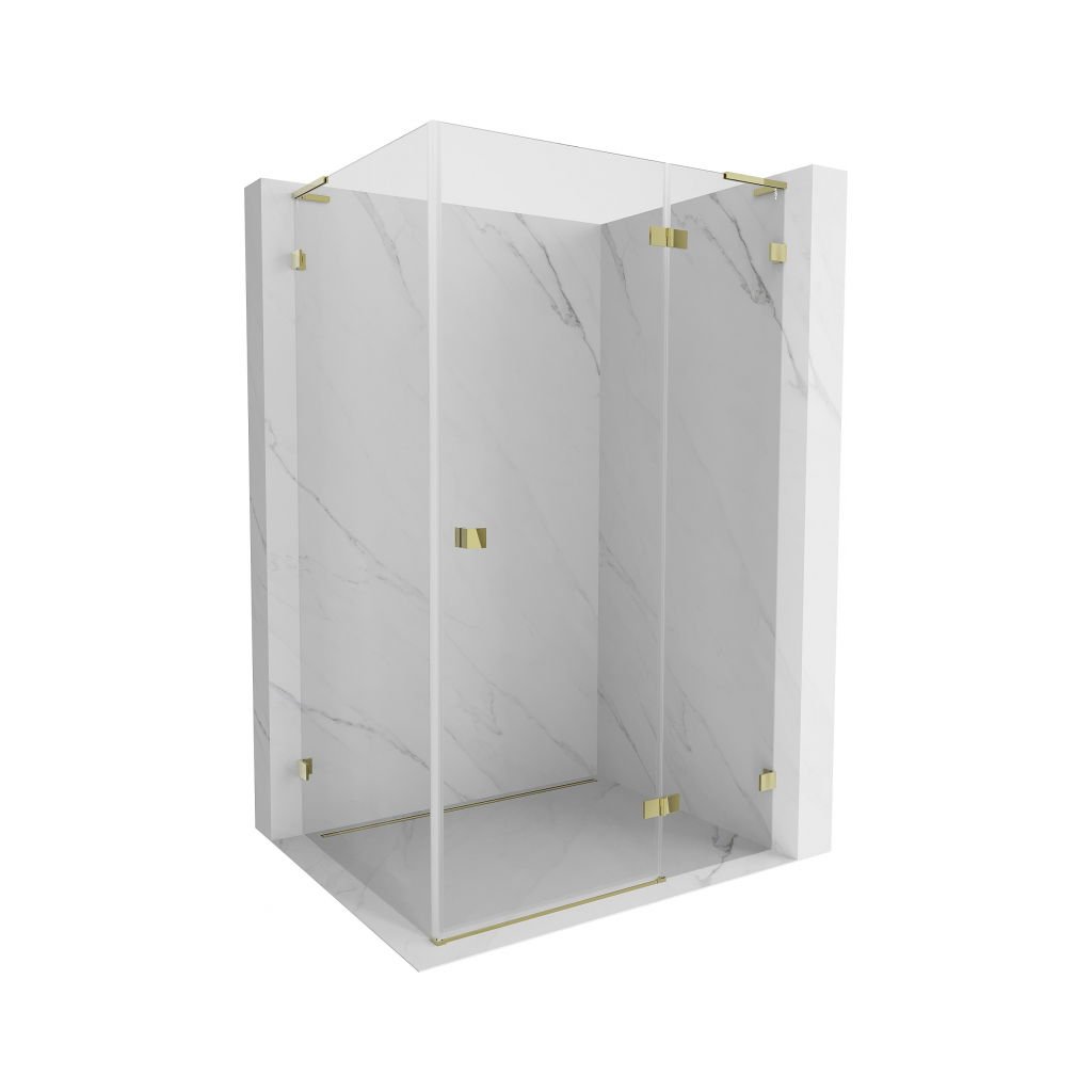 Mexen Lunar, L pravý výklopný sprchový kout 75 x 70 cm, 8mm čiré sklo, zlatý profil, 834L-075-070-50-00-P