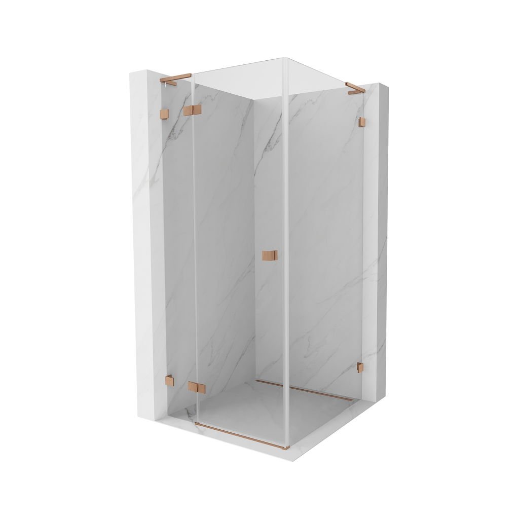 Mexen Lunar, L sklápěcí sprchový kout levý 100 x 100 cm, 8mm čiré sklo, profil měděná matná, 834L-100-100-65-00-L