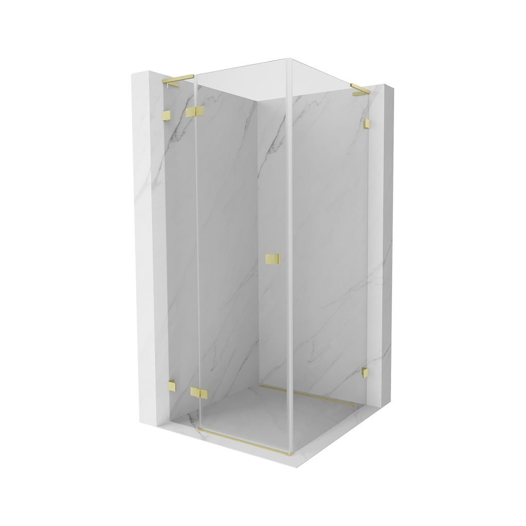 Mexen Lunar, L sklápěcí sprchový kout levý 100 x 100 cm, 8mm čiré sklo, zlatý kartáčovaný - 834L-100-100-55-00-L