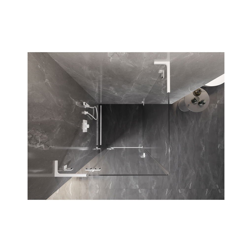 Mexen Lunar, L sklápěcí sprchový kout levý 80 x 80 cm, 8mm čiré sklo, bílý profil, 834L-080-080-20-00-L