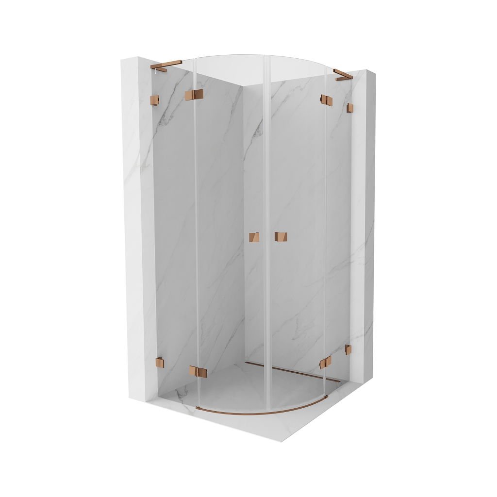 Mexen Lunar, L výklopný půlkruhový sprchový kout 80 x 80 cm, 8mm čiré sklo, profil růžové zlato, 833L-080L-080P-60-00
