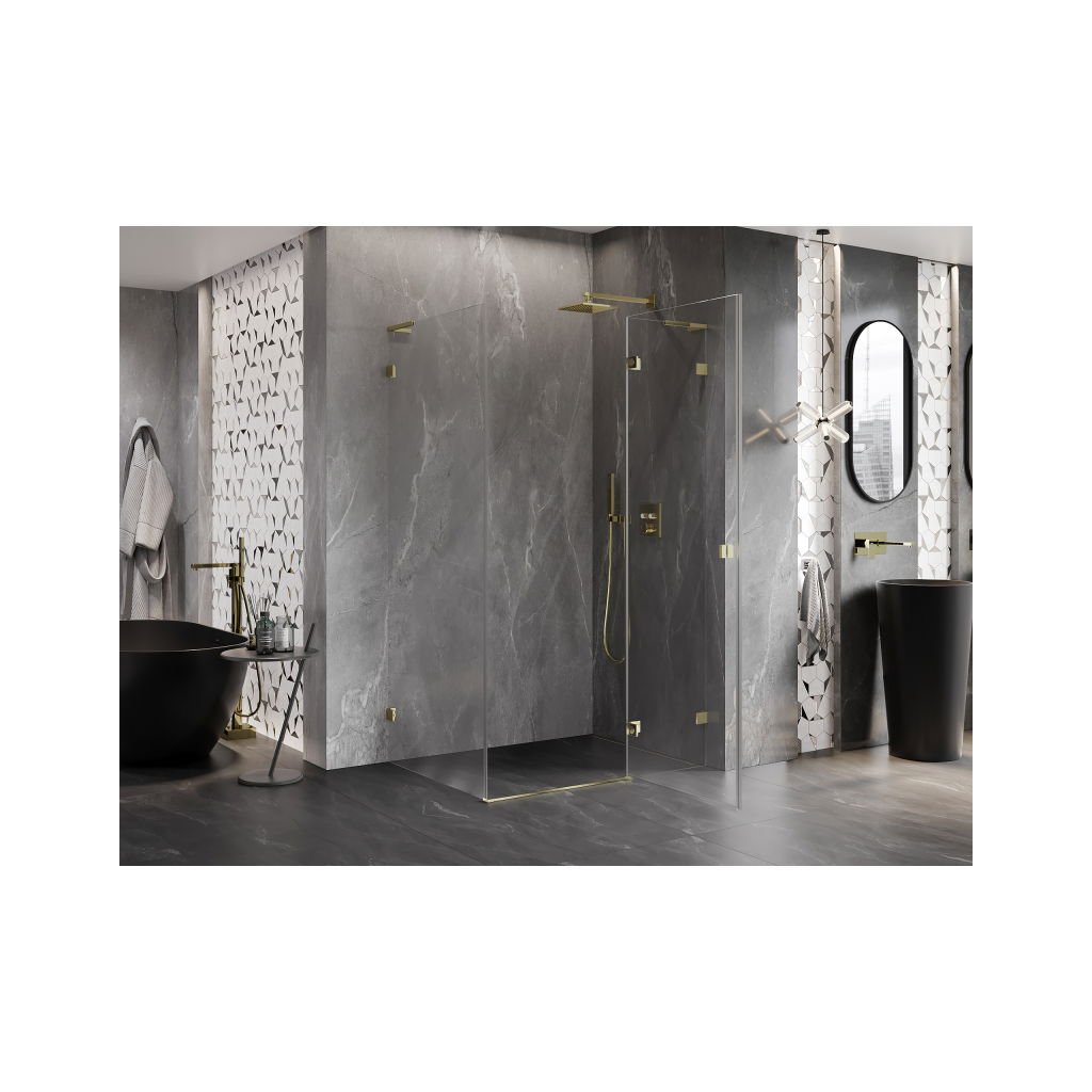 Mexen Lunar, L výklopný sprchový kout pravý 100 x 70 cm, 8mm čiré sklo, zlatý profil, 834L-100-070-50-00-P