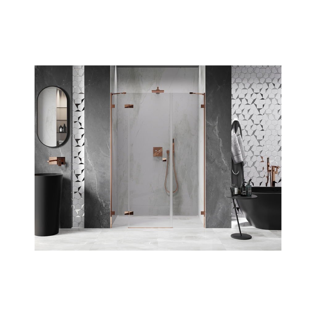 Mexen Lunar, levé otočné sprchové dveře 155 cm, 8mm čiré sklo, růžové zlato profil, 834S-155-050-60-00-L