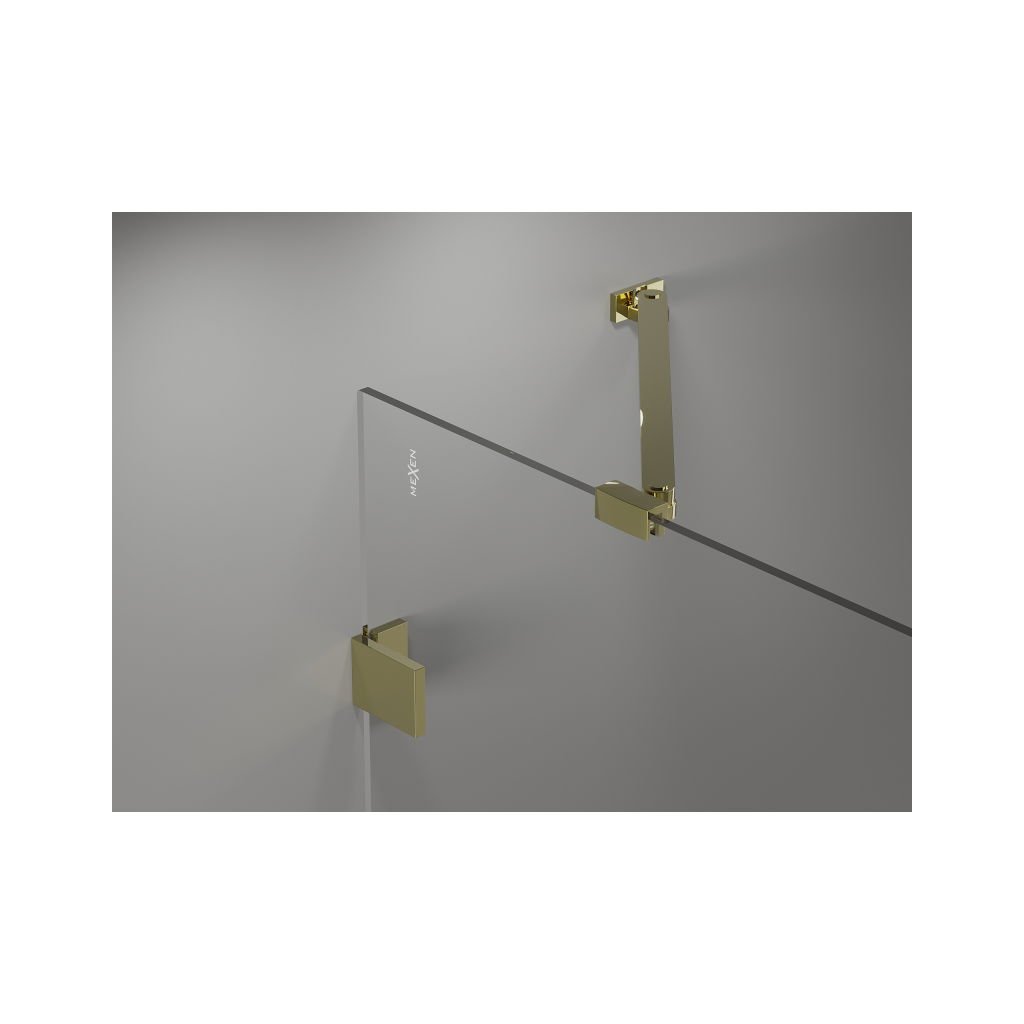 Mexen Lunar, Pětiúhelníkový sprchový kout Mexen Lunar naklápěcí doleva 100 x 100 cm, 8mm čiré sklo, zlatý profil, 831-100L-100P-50-00-L