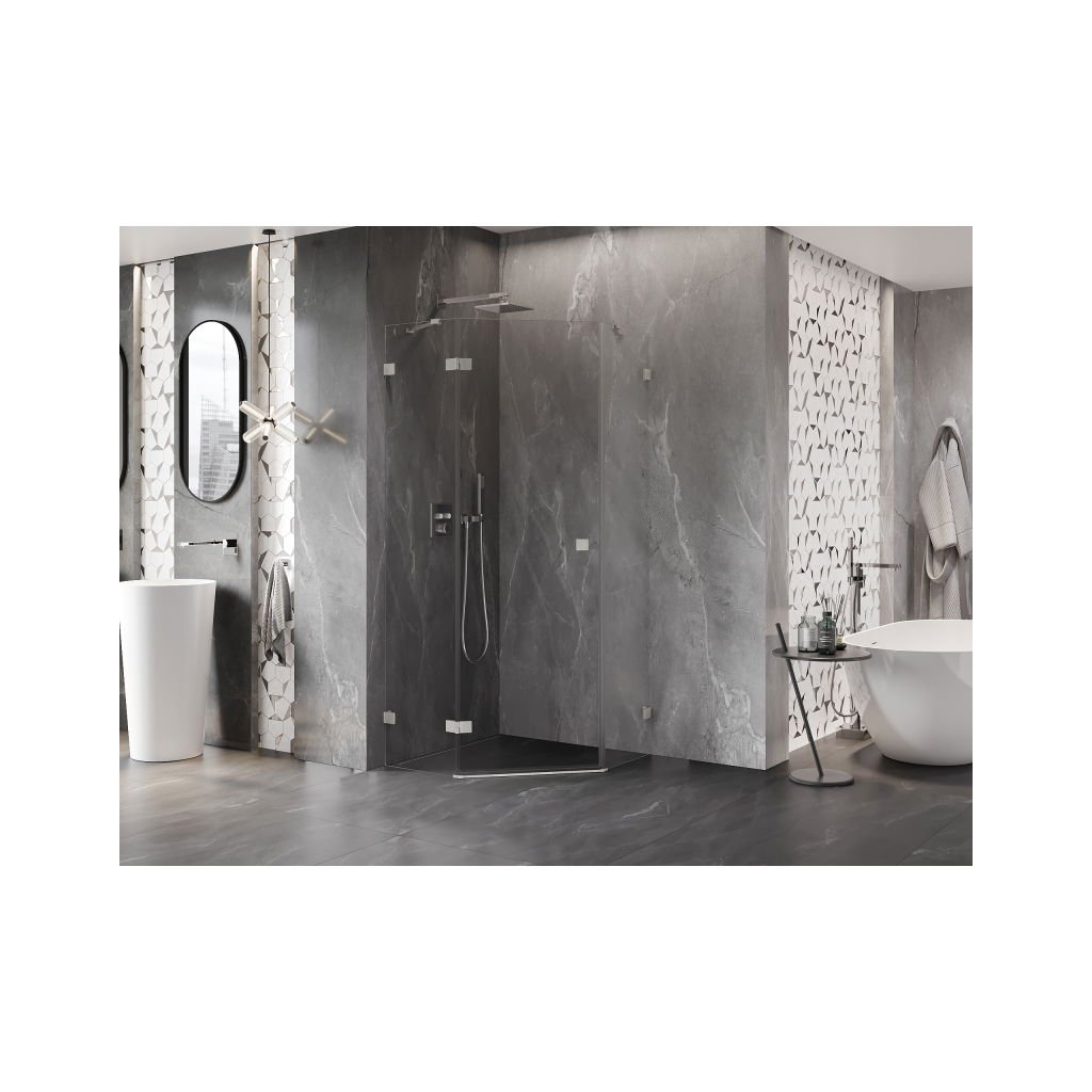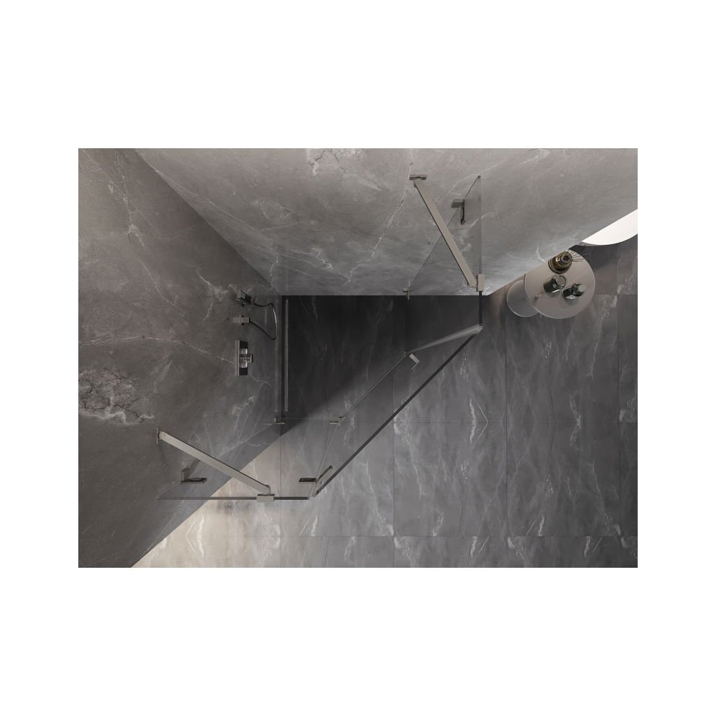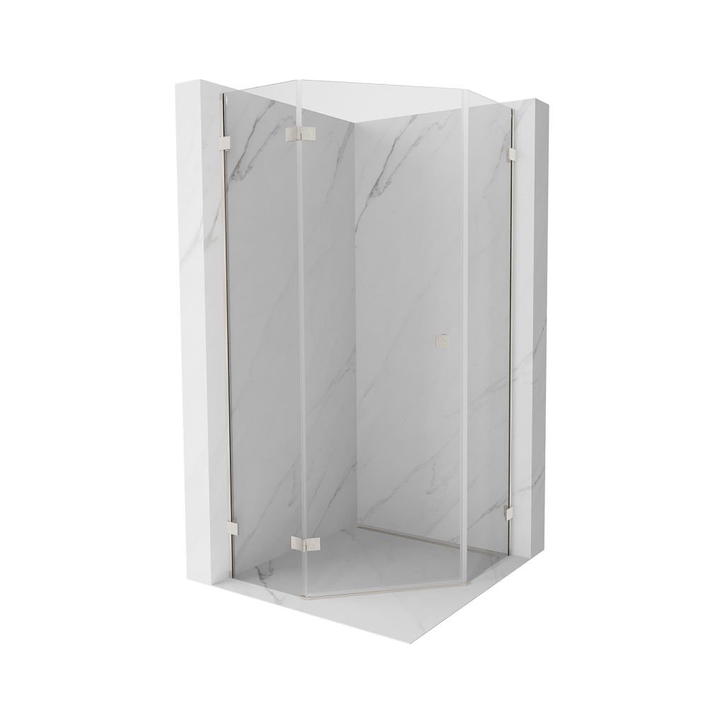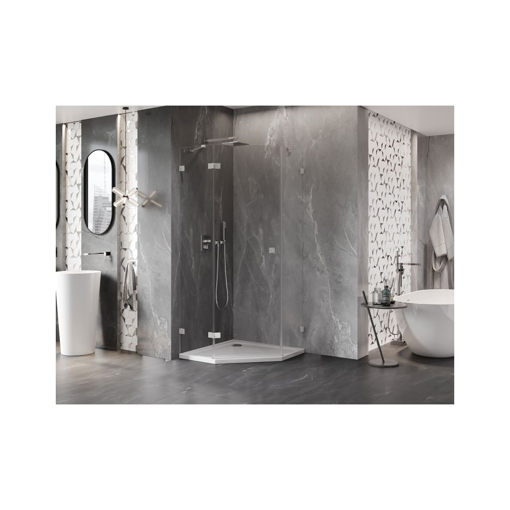 Mexen Lunar, Pětiúhelníkový sprchový kout Mexen Lunar s výklopným levým oknem 100 x 100 cm, 8mm čiré sklo, ocelový profil, 831-100L-100P-97-00-L