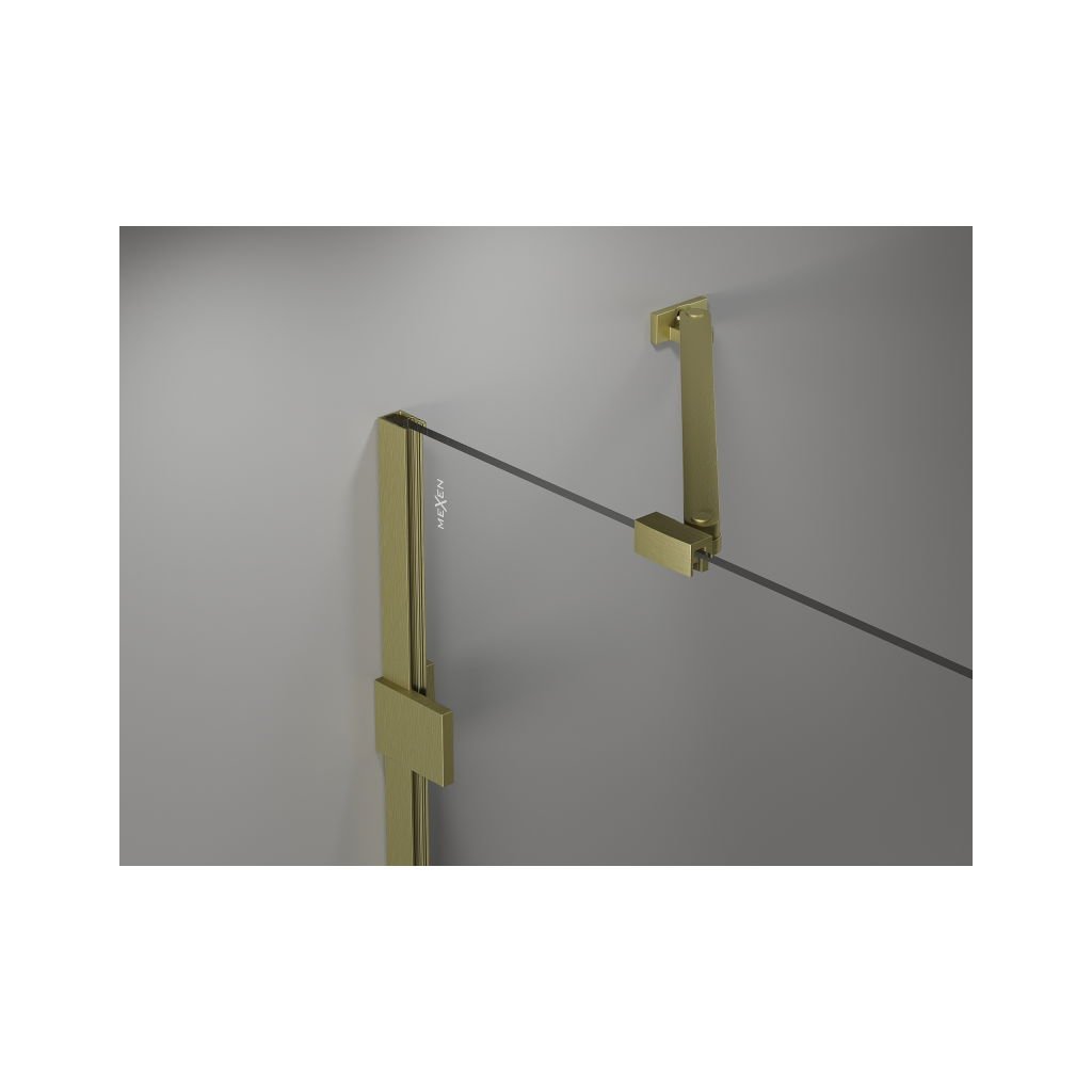 Mexen Lunar, Pětiúhelníkový sprchový kout Mexen Lunar s výklopným levým oknem 100 x 90 cm, 8mm čiré sklo, zlatý matný profil, 831-100L-090P-55-00-L