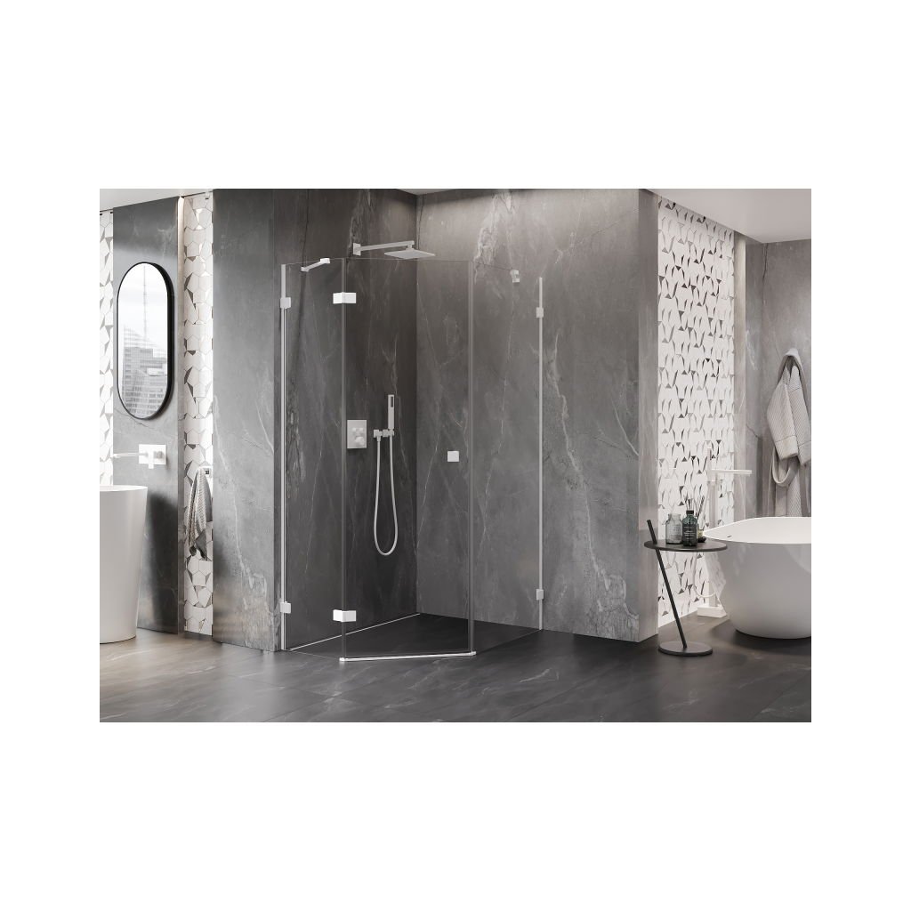 Mexen Lunar, Pětiúhelníkový sprchový kout Mexen Lunar s výklopným levým oknem 80 x 100 cm, 8mm čiré sklo, bílý profil, 831-080L-100P-01-20-L