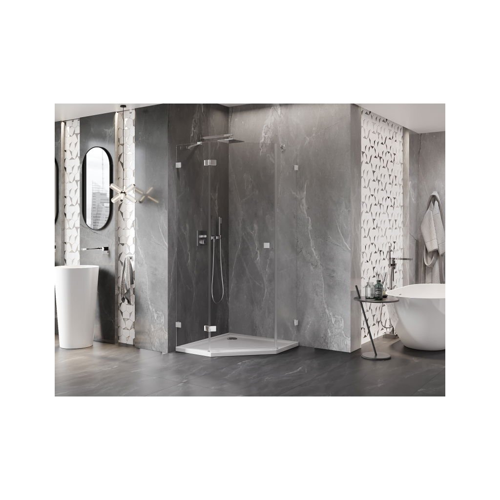 Mexen Lunar, pětiúhelníkový sprchový kout naklápěcí doleva 80 x 80 cm, 8mm čiré sklo, chromový profil, 831-080L-080P-01-00-L