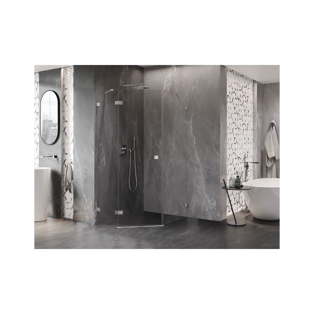 Mexen Lunar, pětiúhelníkový sprchový kout naklápěcí doleva 80 x 90 cm, 8mm čiré sklo, ocelový profil, 831-080L-090P-97-00-L