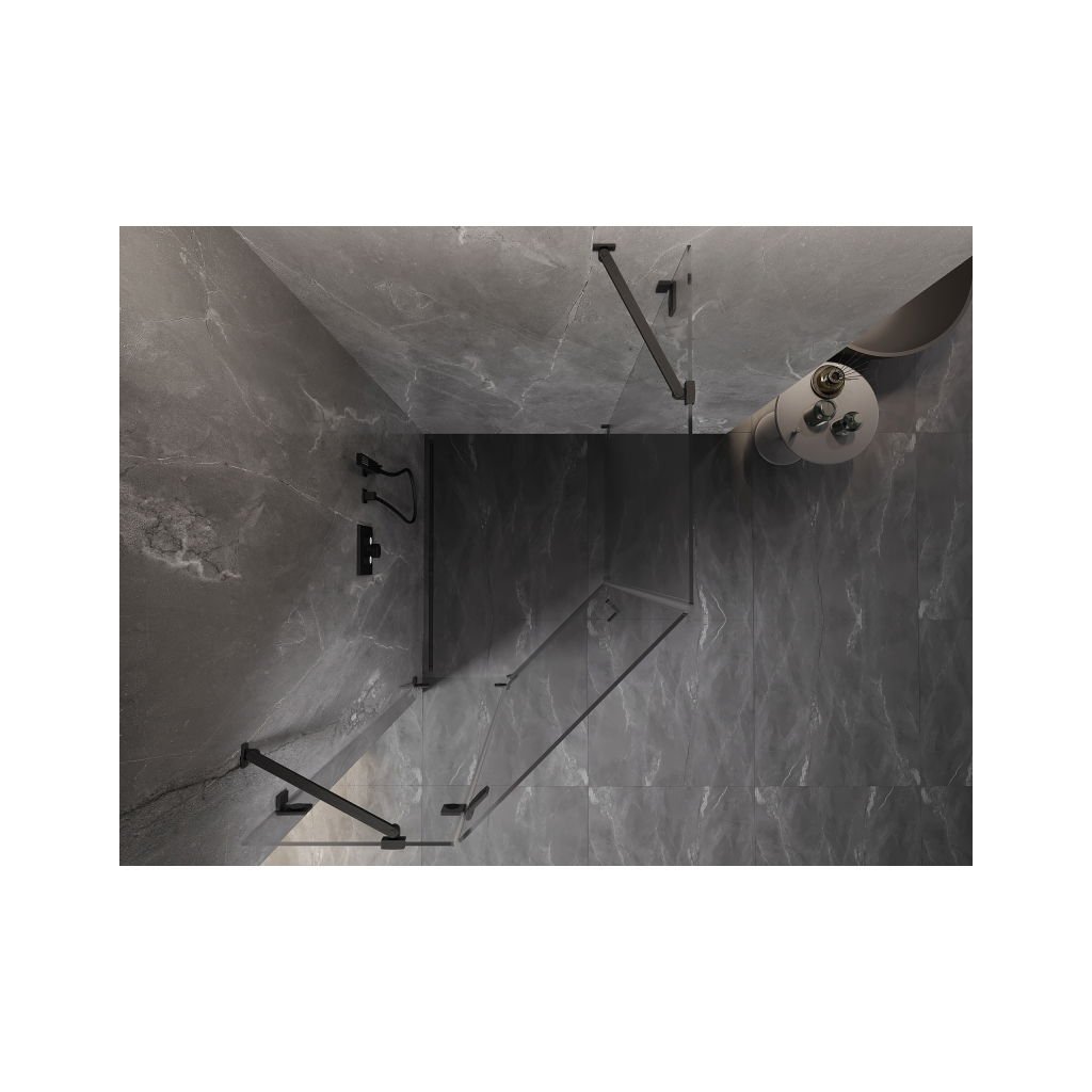 Mexen Lunar, pětiúhelníkový sprchový kout naklápěcí doleva 80 x 90 cm, 8mm čiré sklo, profil grafit broušený, 831-080L-090P-66-00-L