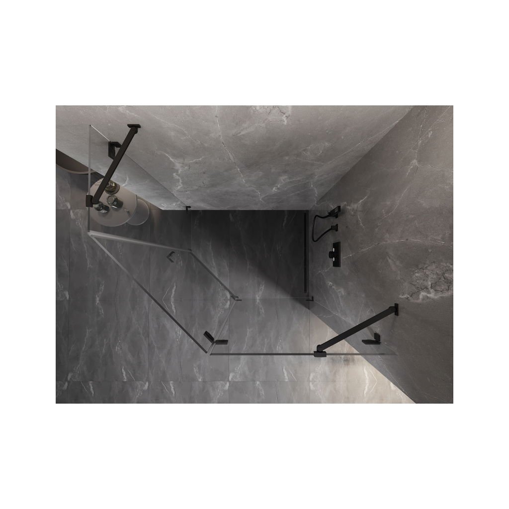 Mexen Lunar, pětiúhelníkový sprchový kout naklápěcí vpravo 90 x 80 cm, 8mm čiré sklo, černý profil, 831-090P-080L-70-00-P