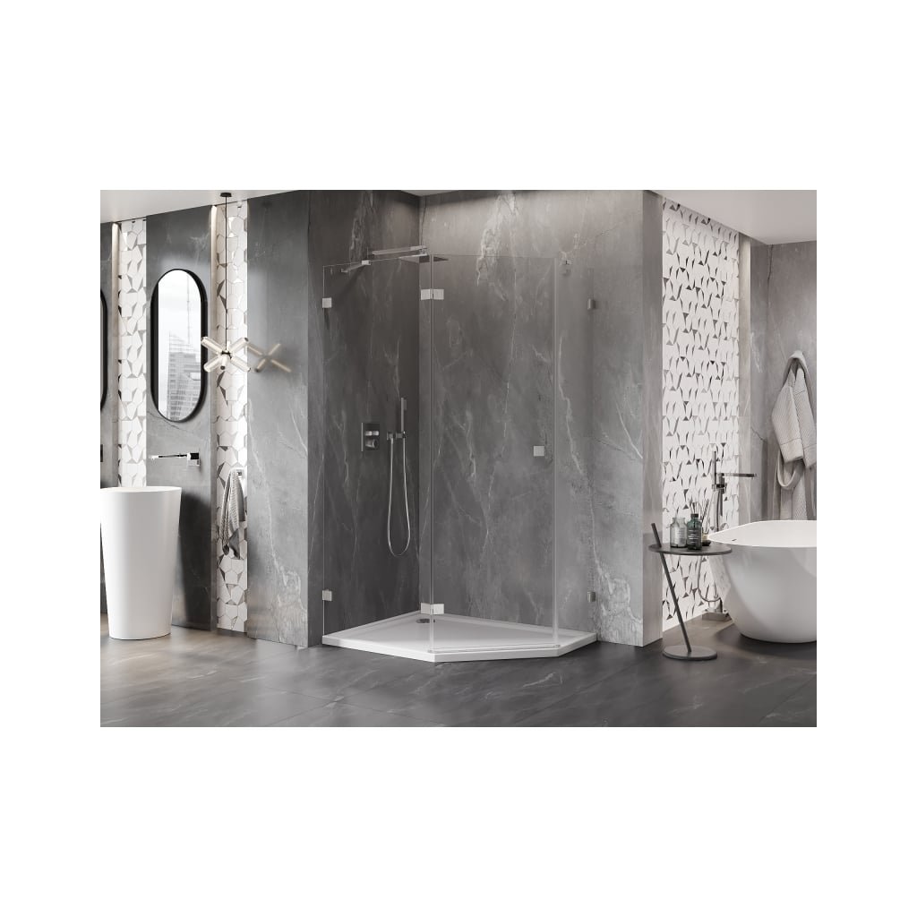 Mexen Lunar, pětiúhelníkový sprchový kout s levým náklonem 100 x 90 cm, 8mm čiré sklo, ocelový profil, 831-100L-090P-97-00-L
